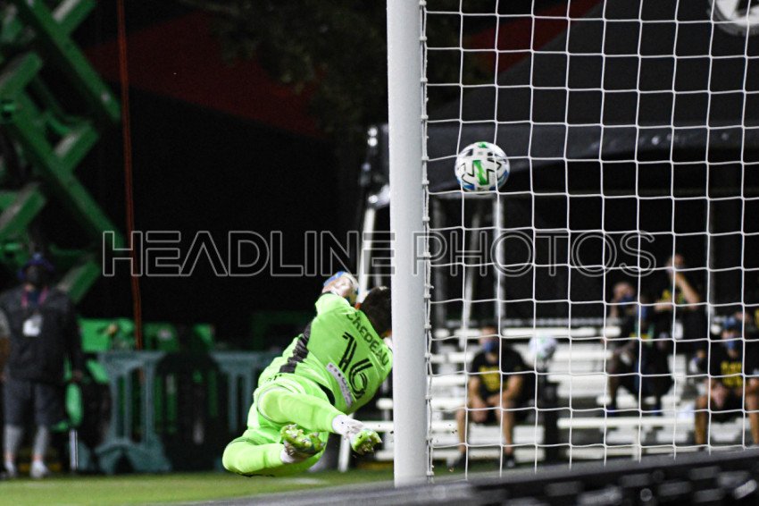 Vancouver Whitecaps Goalkeeper Crépeau, Maxime #16 makes a jump to try to catch the ball during the MLS is Back Tournament at ESPN Wild World of Sports in Orlando Florida on Wednesday July 15, 2020. Photo Credit: Marty Jean-Louis