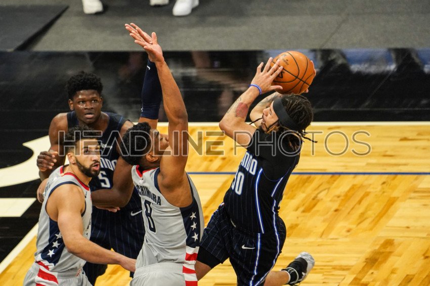 Orlando, Florida, USA, April 7, 2021, Orlando Magic Point Guard Cole Anthony #50 attempt to make a basket against the Washington Wizards at the Amway Center (Photo Credit: Marty Jean-Louis)