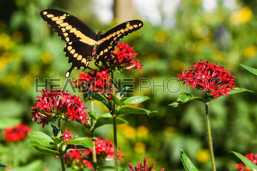 Beautiful butterfly is seen on red flower in a beautiful summer day