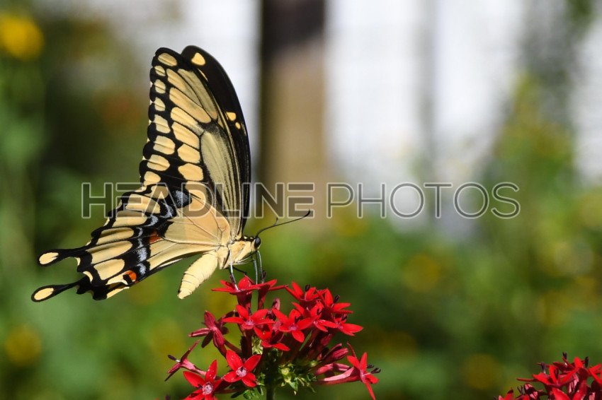 Beautiful butterfly is seen on red flower in a beautiful summer day