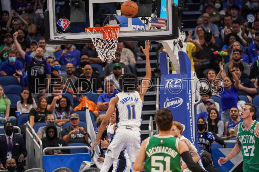 Orlando, Florida, USA, October 13, 2021, Orlando Magic's Jeff Dowtin #11 makes a layup against the Celtics during the second half at the Amway Center. (Photo Credit: Marty Jean-Louis)