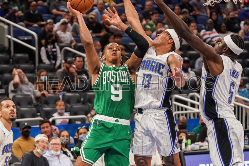 Orlando, Florida, USA, October 13, 2021, Boston Celtics player Romeo Langford #9 attempt to make a basket during the second half of the game at the Amway Center. (Photo Credit: Marty Jean-Louis)