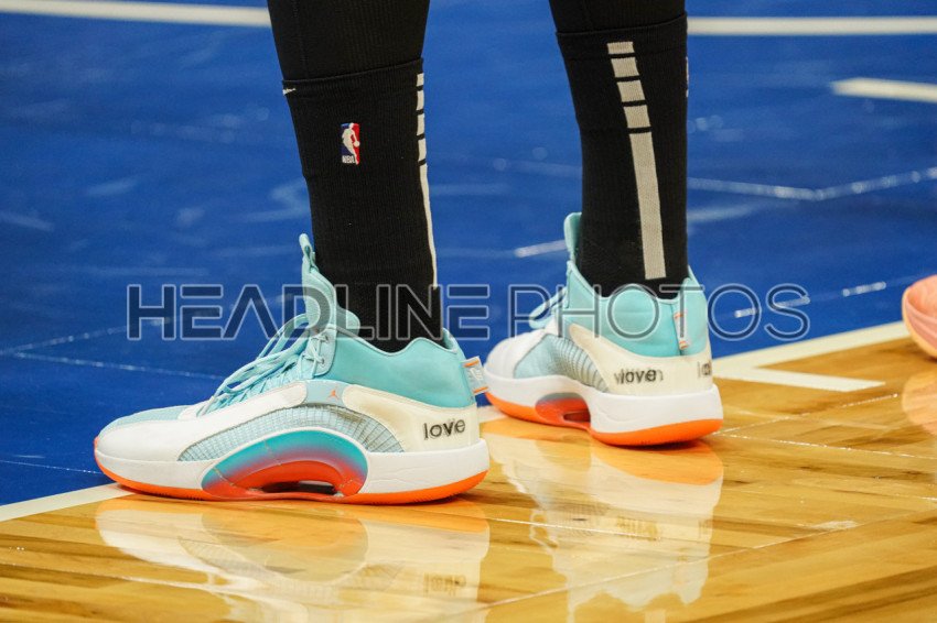Orlando, Florida, USA, October 13, 2021, Boston Celtics' player Enes Kanter's shoes during the game at the Amway Center. (Photo Credit: Marty Jean-Louis)