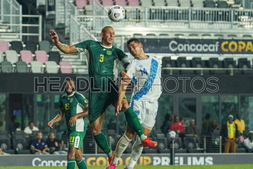 Fort Lauderdale, Florida, USA, July 3, 2021, Guatemala Forward Darwin Lom #14 makes a header during the Concacaf Gold Cup Prelims at Drive Pink Stadium. (Photo Credit: Marty Jean-Louis)