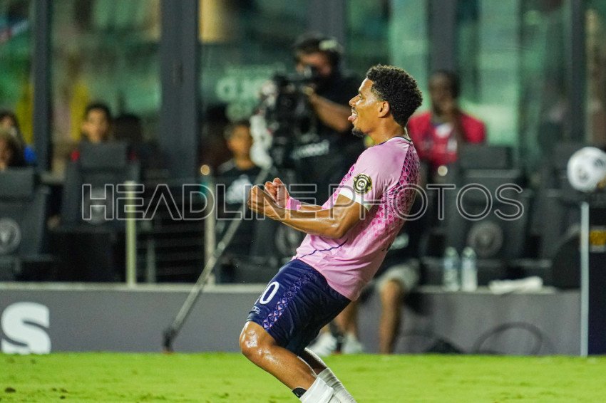 Fort Lauderdale, Florida, USA, July 2, 2021, Bermuda Midfielder Zeiko Lewis #10 celebrate after scoring against Barbados during the Concacaf Gold Cup Prelims at Drive Pink Stadium. (Photo Credit: Marty Jean-Louis)