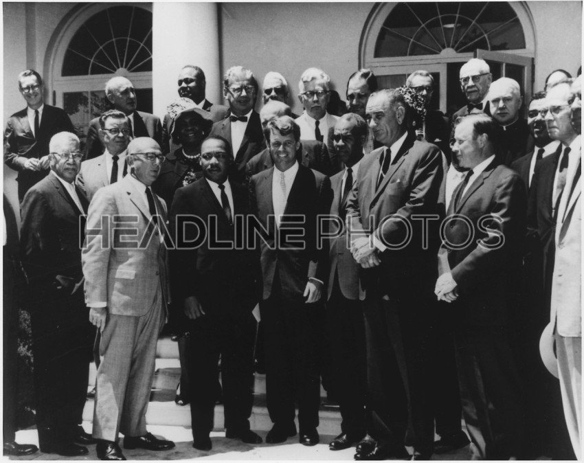 Civil Rights Leaders June Scope and content Photograph of meeting with Civil Rights leaders Front Row Martin Luther King Jr Robert Kennedy Roy Wilkins Lyndon Baines Johnson Walter Reuther Whitney Young Philip Randolph Second Row Second From Left Rosa