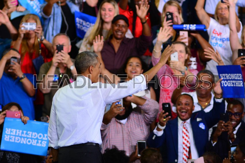 President Barack Obama host a Campaign Rally for Presidential Candidate Hillary Clinton at CFE Arena in Orlando Florida on October 28, 2016. Photo Credit: Marty Jean-Louis