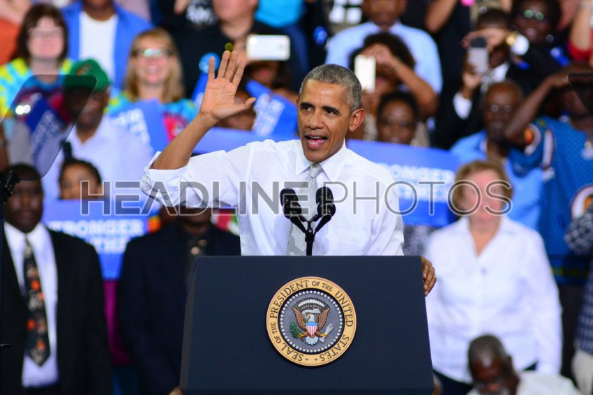President Barack Obama host a Campaign Rally for Presidential Candidate Hillary Clinton at CFE Arena in Orlando Florida on October 28, 2016. Photo Credit: Marty Jean-Louis