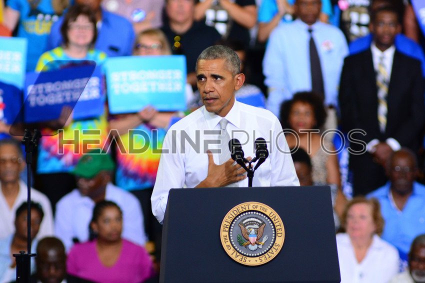 President Barack Obama host a Campaign Rally for Presidential Candidate Hillary Clinton at CFE Arena in Orlando Florida on October 28, 2016. Photo Credit: Marty Jean-Louis