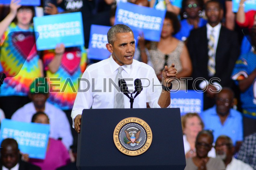 President Barack Obama host a Campaign Rally for Presidential Candidate Hillary Clinton at CFE Arena in Orlando Florida on October 28, 2016. Photo Credit: Marty Jean-Louis