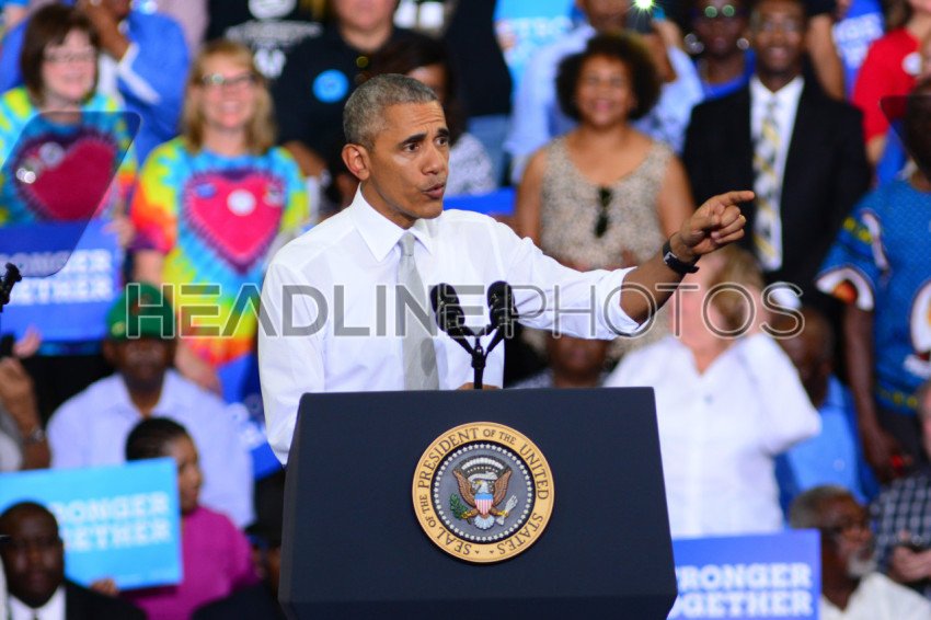 President Barack Obama host a Campaign Rally for Presidential Candidate Hillary Clinton at CFE Arena in Orlando Florida on October 28, 2016. Photo Credit: Marty Jean-Louis