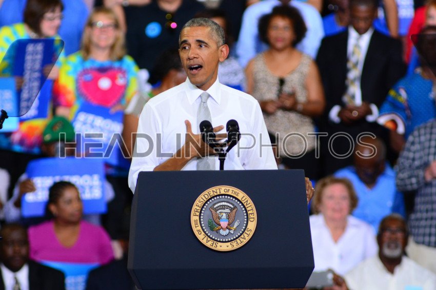 President Barack Obama host a Campaign Rally for Presidential Candidate Hillary Clinton at CFE Arena in Orlando Florida on October 28, 2016. Photo Credit: Marty Jean-Louis