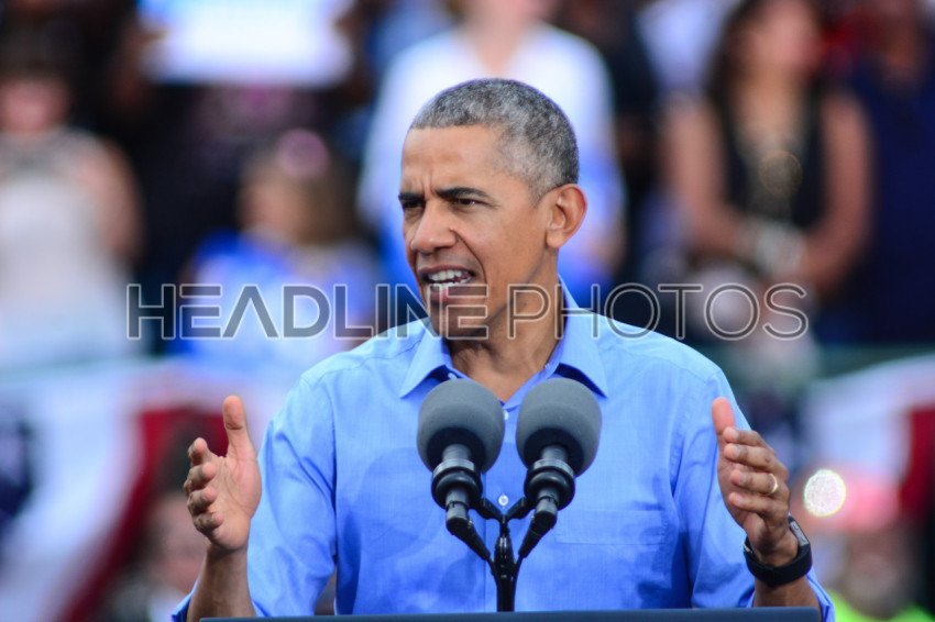 President Barack Obama speaks at a campaign rally at the Osceola Heritage Park Stadium for Democratic presidential nominee Hillary Clinton in Kissimmee, Florida. Photo Credit: Marty Jean-Louis