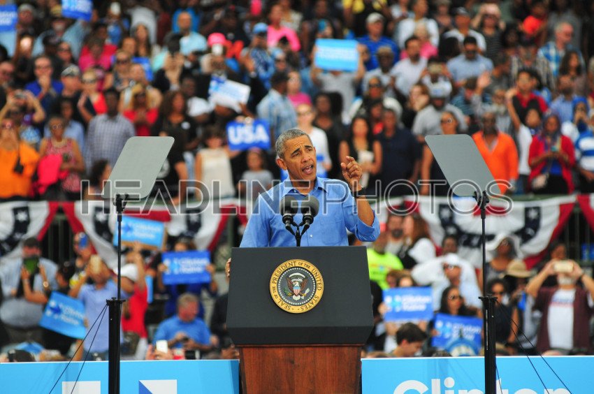 President Barack Obama speaks at a campaign rally at the Osceola Heritage Park Stadium for Democratic presidential nominee Hillary Clinton in Kissimmee, Florida. Photo Credit: Marty Jean-Louis