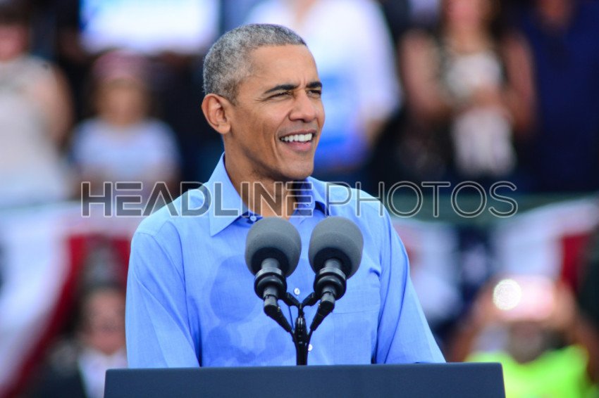 President Barack Obama speaks at a campaign rally at the Osceola Heritage Park Stadium for Democratic presidential nominee Hillary Clinton in Kissimmee, Florida. Photo Credit: Marty Jean-Louis