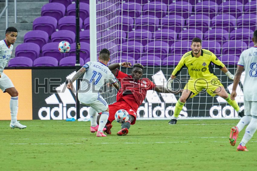 Orlando, Florida, USA, June 26, 2021, FC Cincinnati Midfielder Luciano Acosta #11 attempt to score but is blocked Tonronto FC defender Chris Mavinga #23 at Exploria Stadium. (Photo Credit: Marty Jean-Louis)