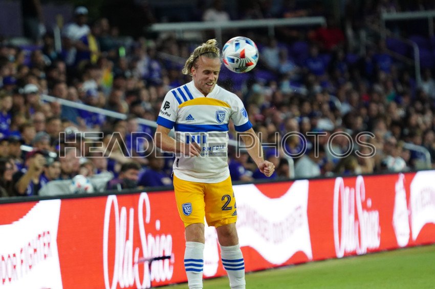 Orlando, Florida, USA, June 22, 2021, San Jose Earthquakes Midfieler Tommy Thompson #22 makes a header at Exploria Stadium. (Photo Credit: Marty Jean-Louis)