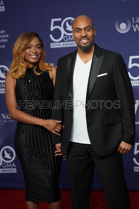 Phil Thompson and his wife Walk the Red Carpet at the 50th GMA Dove Awards at Linbscome University in Nashville, Tennessee on October 15, 2019. Photo Credit: Marty Jean-Louis