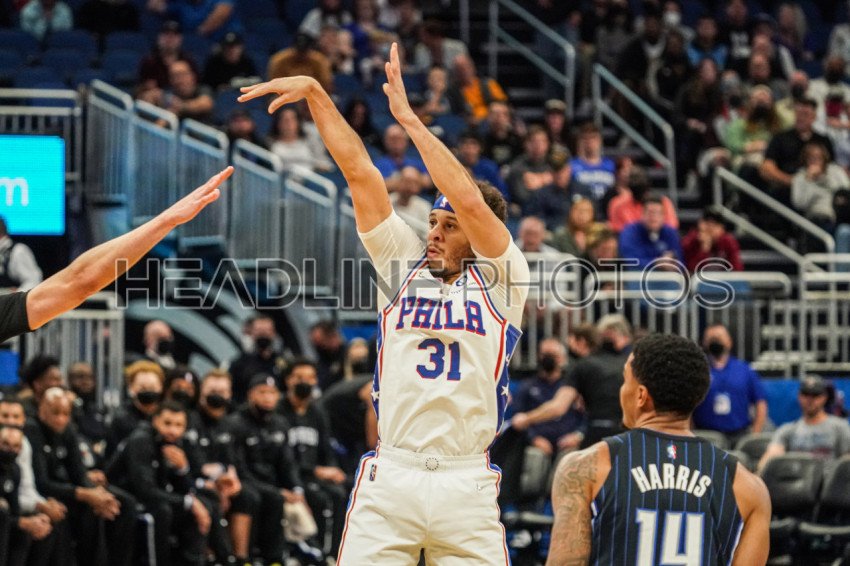 Orlando, Florida, USA, December 30, 2021, Philadelphia 76ers Guard Seth Curry #31 shoots a three point during the first half at the Amway Center. (Photo Credit: Marty Jean-Louis)
