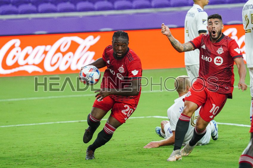 Orlando, Florida, USA, June 19, 2021, Toronto FC forward Ayo Akinola #20 runs with the ball after scoring at Exploria Stadium. (Photo Credit: Marty Jean-Louis)