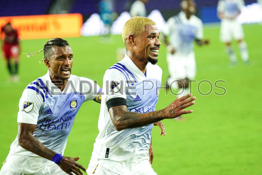 Orlando, Florida, USA, June 19, 2021, Orlando City SC midfielder Junior Urso #11 celebrates after scoring at Exploria Stadium. (Photo Credit: Marty Jean-Louis)