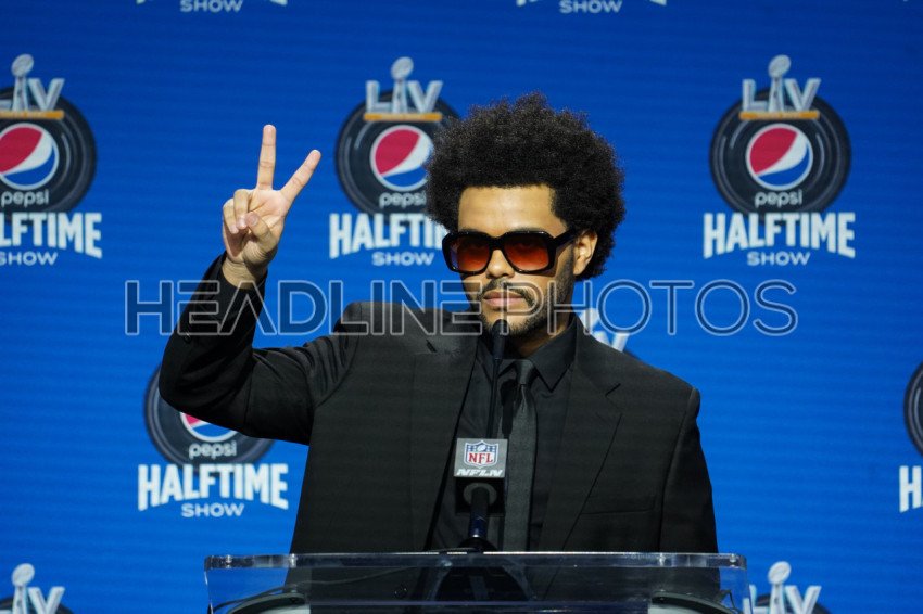 Tampa, Florida, USA, February 4, 2021, The Weeknd answers questions from the press during the Super Bowl LV Half Time Show Press Conference (Photo Credit: Marty Jean-Louis)