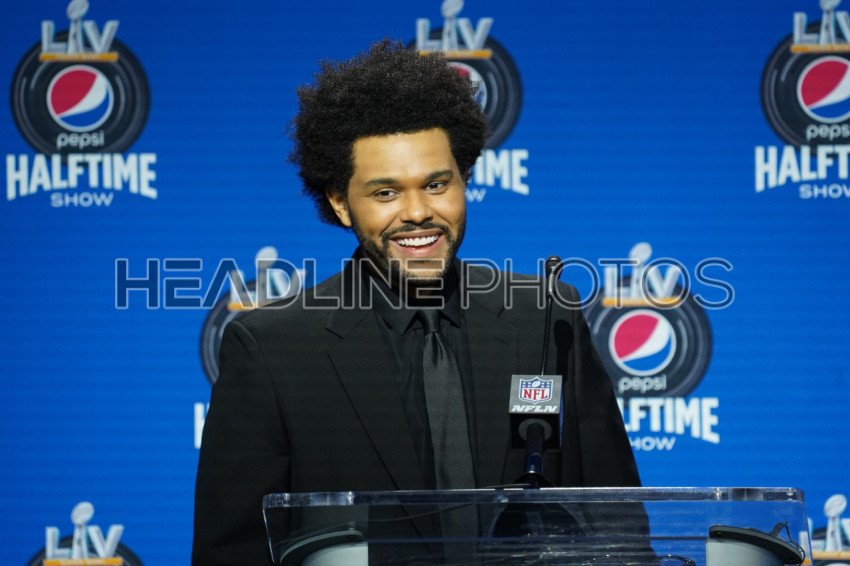 Tampa, Florida, USA, February 4, 2021, The Weeknd answers questions from the press during the Super Bowl LV Half Time Show Press Conference (Photo Credit: Marty Jean-Louis)