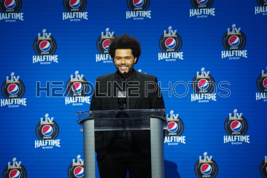 Tampa, Florida, USA, February 4, 2021, The Weeknd answers questions from the press during the Super Bowl LV Half Time Show Press Conference (Photo Credit: Marty Jean-Louis)