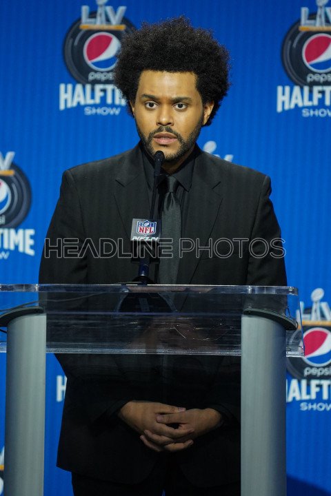 Tampa, Florida, USA, February 4, 2021, The Weeknd answers questions from the press during the Super Bowl LV Half Time Show Press Conference (Photo Credit: Marty Jean-Louis)