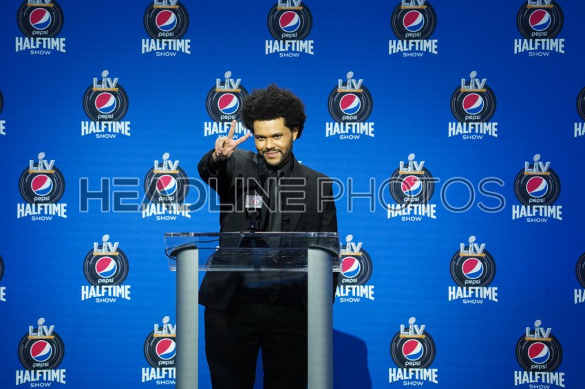 Tampa, Florida, USA, February 4, 2021, The Weeknd answers questions from the press during the Super Bowl LV Half Time Show Press Conference (Photo Credit: Marty Jean-Louis)