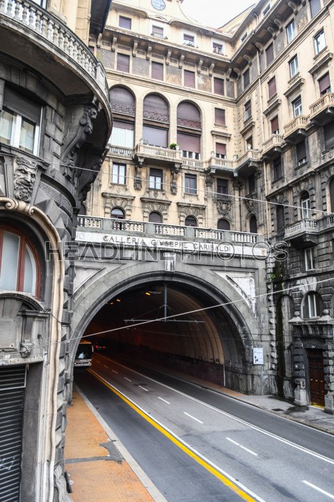 genoa italy (june 10 2018) balcony brick building cars dark grey old passage road travel tunnelSimilar Photos
