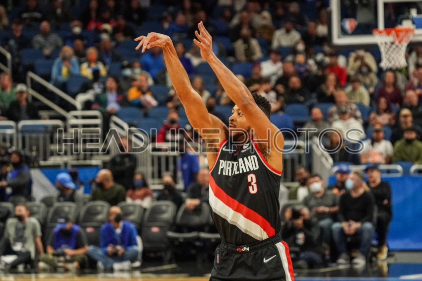 Orlando, Florida, USA, January 17, 2022, Portland Trail Blazers Guard CJ McCollum #3 attempt to make a basket during the first quarter at the Amway Center. (Photo Credit: Marty Jean-Louis)