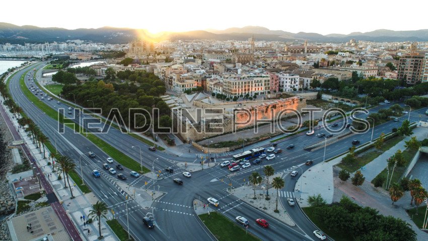 palma de mallorca spain (june 12 2018) cars castle city drone europe italy mountain palma de mal palma de mallorca road scenery sunset traffic travel viewSimilar Photos