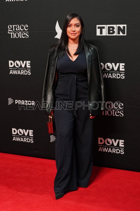 Nashville, Tennessee, USA, October 18, 2022. Stephanie Valcarcel on the Red Carpet during the 53nd Annual GMA Dove Awards at Lipscomb University in Nashville, Tennessee, USA.