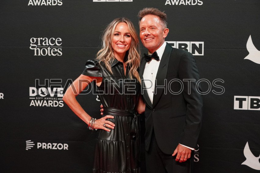 Nashville, Tennessee, USA, October 18, 2022. Chris Tomlin and his wife on the Red Carpet during the 53nd Annual GMA Dove Awards at Lipscomb University in Nashville, Tennessee, USA.