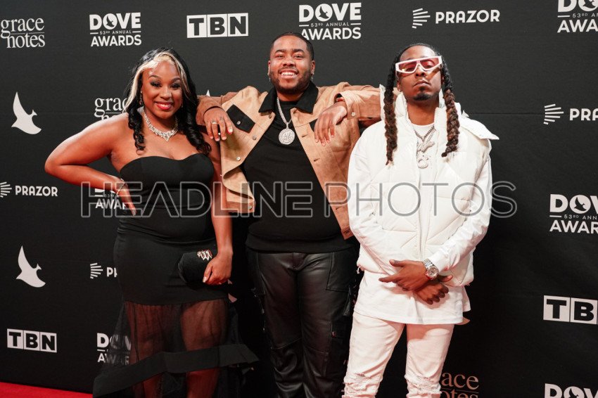 Nashville, Tennessee, USA, October 18, 2022. 1K Phew and Hero Producer on the Red Carpet during the 53nd Annual GMA Dove Awards at Lipscomb University in Nashville, Tennessee, USA.