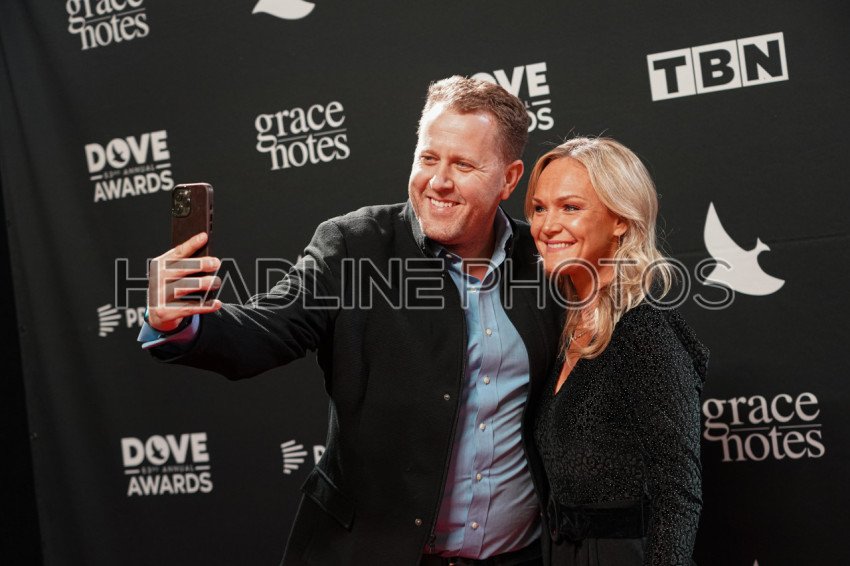 Nashville, Tennessee, USA, October 18, 2022. Jon Erwin and his wife on the Red Carpet during the 53nd Annual GMA Dove Awards at Lipscomb University in Nashville, Tennessee, USA.
