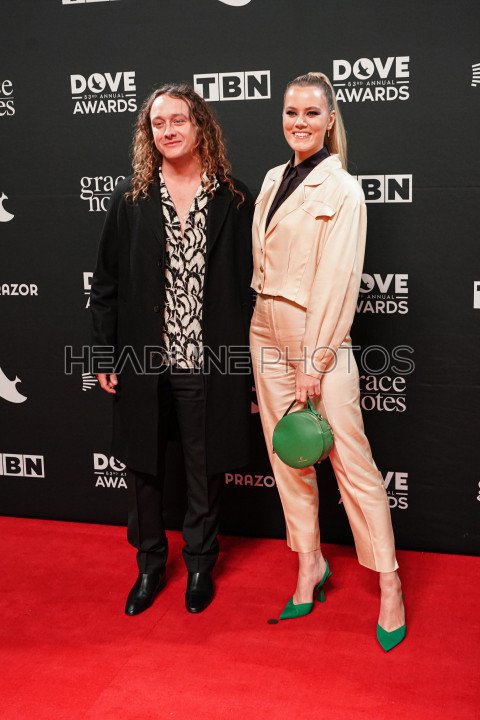 Nashville, Tennessee, USA, October 18, 2022. Benjamin William Hastings and Taya on the Red Carpet during the 53nd Annual GMA Dove Awards at Lipscomb University in Nashville, Tennessee, USA.