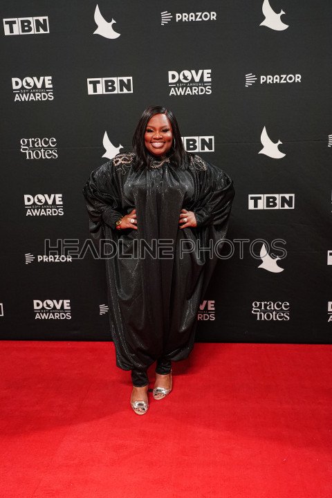 Nashville, Tennessee, USA, October 18, 2022. Tasha Cobbs Leonard on the Red Carpet during the 53nd Annual GMA Dove Awards at Lipscomb University in Nashville, Tennessee, USA.