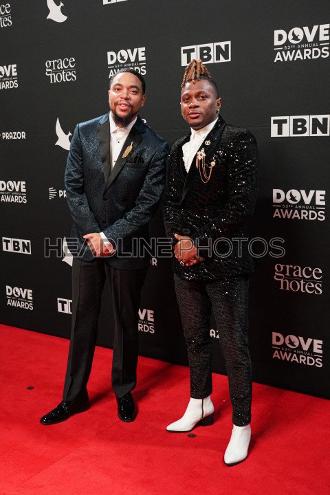 Nashville, Tennessee, USA, October 18, 2022. Jonathan Anderson and Lawrence Flowers on the Red Carpet during the 53nd Annual GMA Dove Awards at Lipscomb University in Nashville, Tennessee, USA.