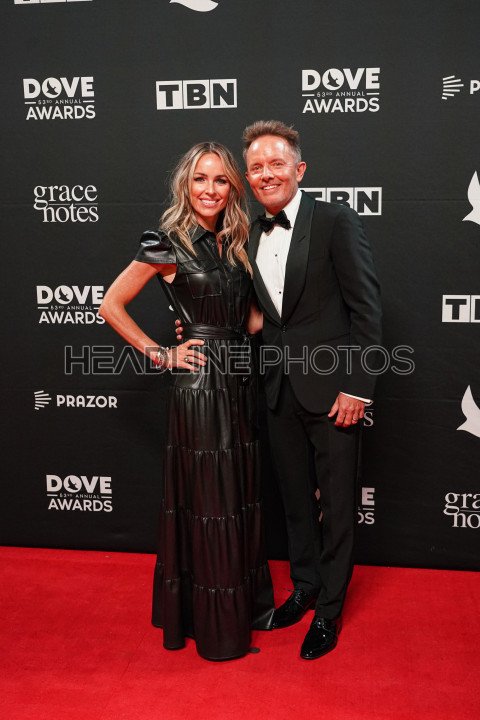 Nashville, Tennessee, USA, October 18, 2022. Chris Tomlin and his wife on the Red Carpet during the 53nd Annual GMA Dove Awards at Lipscomb University in Nashville, Tennessee, USA.