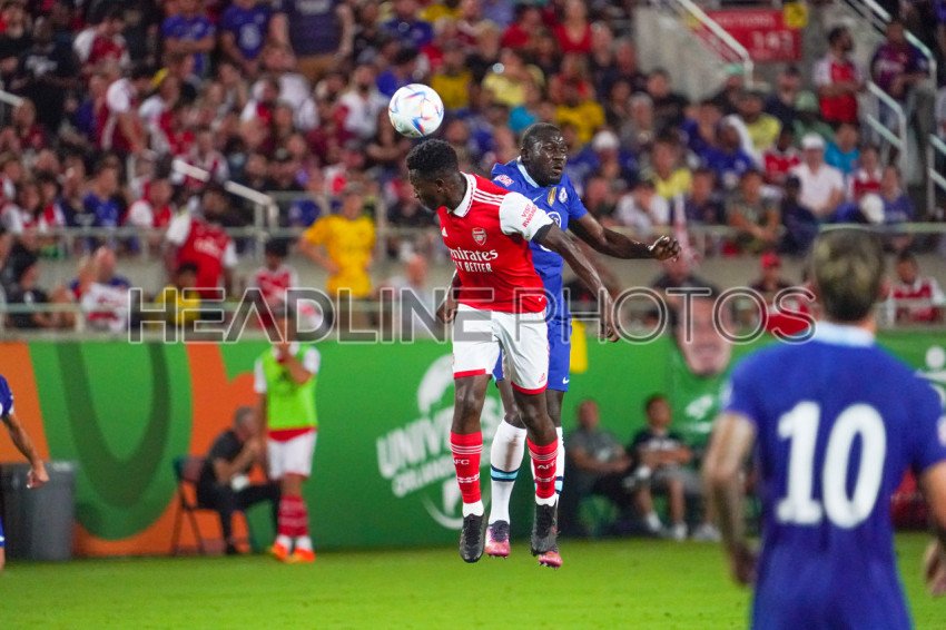 Orlando, Florida, USA, July 23, 2022, Arsenal FC and Chelsea players fight for the ball at Camping World Stadium in a Friendly Match. (Photo Credit: Marty Jean-Louis)