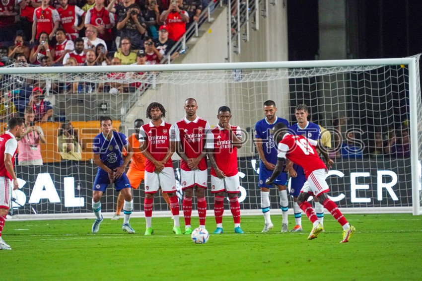 Orlando, Florida, USA, July 23, 2022, Arsenal FC player Nicolas Pepe #19 attempt to score against Chelsea at Camping World Stadium in a Friendly Match. (Photo Credit: Marty Jean-Louis)
