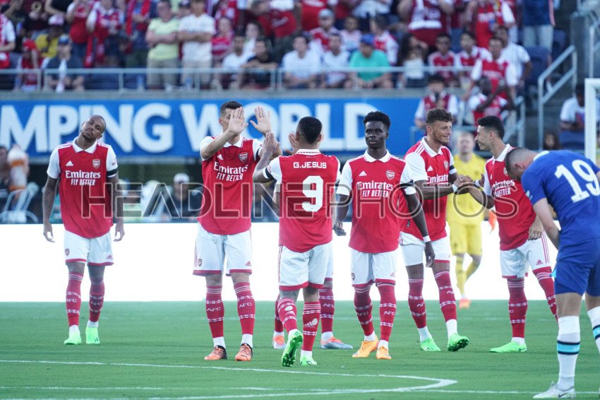 Orlando, Florida, USA, July 23, 2022, Arsenal FC players before the opening whistle at Camping World Stadium in a Friendly Match. (Photo Credit: Marty Jean-Louis)