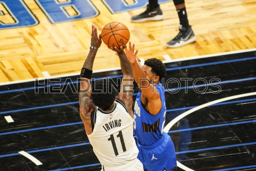 Orlando, Florida, USA, March 19, 2021, Brooklyn Nets Point Guard Kyrie Irving #11 takes a shot against the Orlando Magic at the Amway Center (Photo Credit: Marty Jean-Louis)