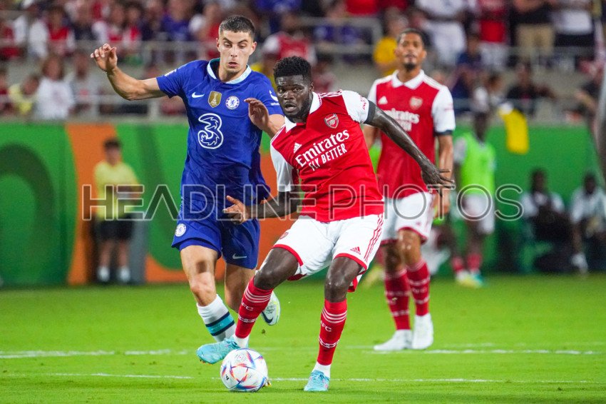 Orlando, Florida, USA, July 23, 2022, Arsenal FC player Thomas Partey #5 makes a pass at Camping World Stadium in a Friendly Match. (Photo Credit: Marty Jean-Louis)