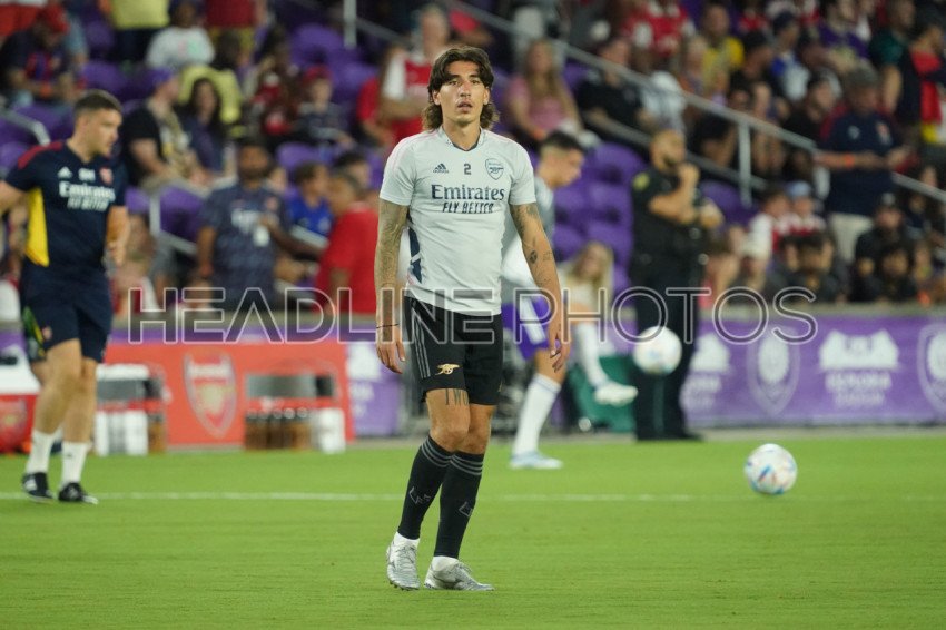 Orlando, Florida, USA, July 20, 2022, Arsenal FC defender Hector Bellerin #2 warms up at Exploria Stadium in a Friendly Match. (Photo Credit: Marty Jean-Louis)