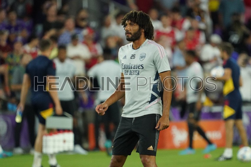 Orlando, Florida, USA, July 20, 2022, Arsenal FC Midfielder Mohamed Elneny warming up at Exploria Stadium in a Friendly Match. (Photo Credit: Marty Jean-Louis)