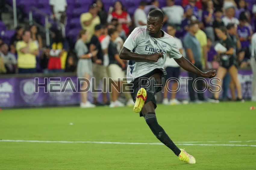 Orlando, Florida, USA, July 20, 2022, Arsenal FC forward Nicolas Pepe #19 warms up at Exploria Stadium in a Friendly Match. (Photo Credit: Marty Jean-Louis)