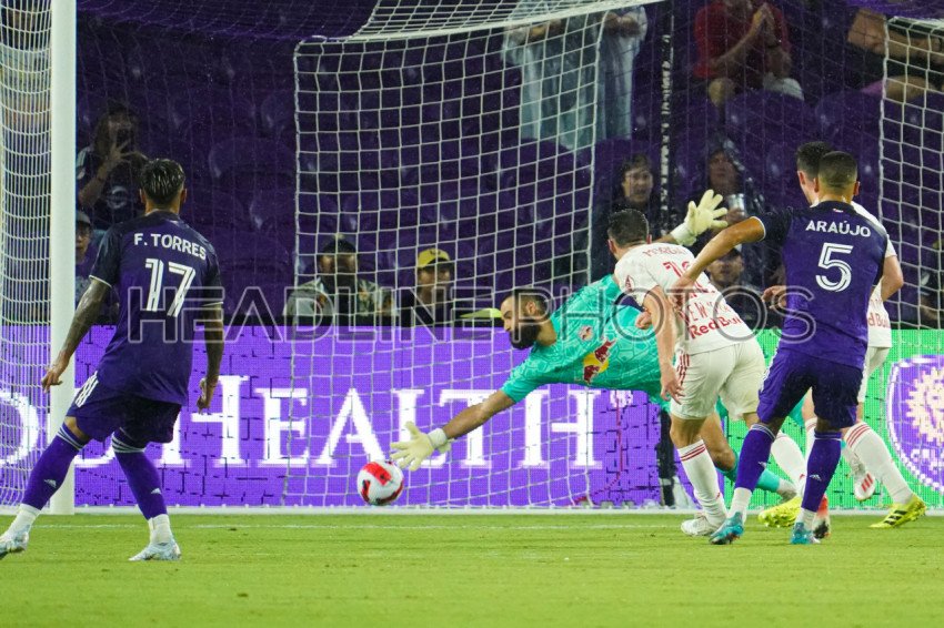 Orlando, Florida, USA, July 27, 2022, New York Red Bulls Goalkeeper Carlos #1 attempt to make a save during the US Open Cup Semi Finals at Exploria Stadium. (Photo Credit: Marty Jean-Louis)